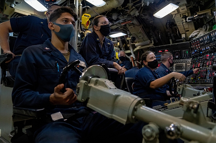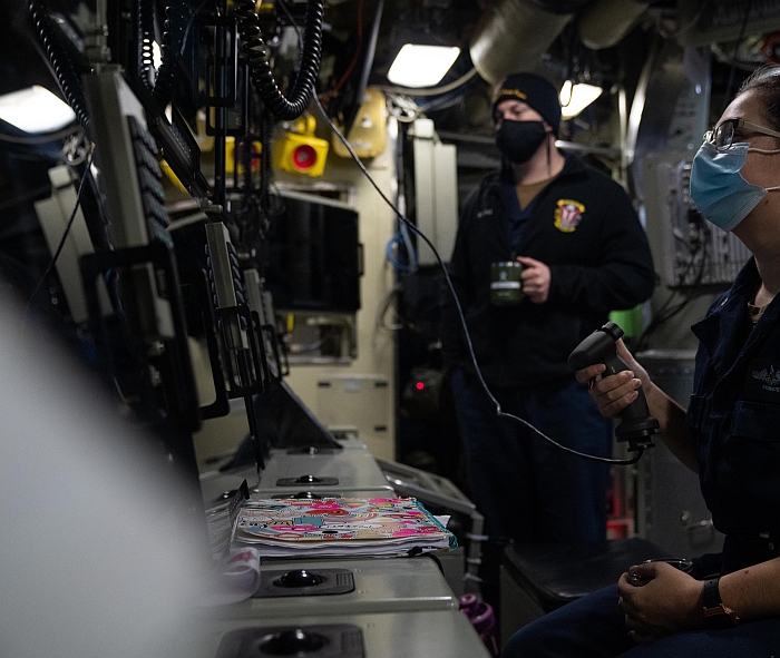 俄亥俄號(USS Ohio SSGN-726)巡航飛彈潛艦的操縱席。攝於2021年初。