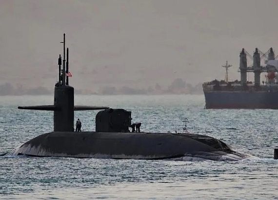 (上與下)在2024年5月初,俄亥俄級彈道飛彈潛艦內布拉斯加號(USS Nebraska SSBN-739)渡航通過