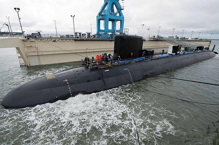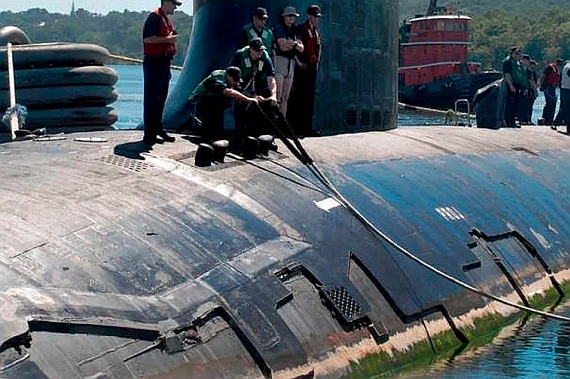 維吉尼亞號核能攻擊潛艦離開康迺迪克州格拉頓(Groton)紐倫敦(New London)海軍機地的照片(出現於2010年下旬)