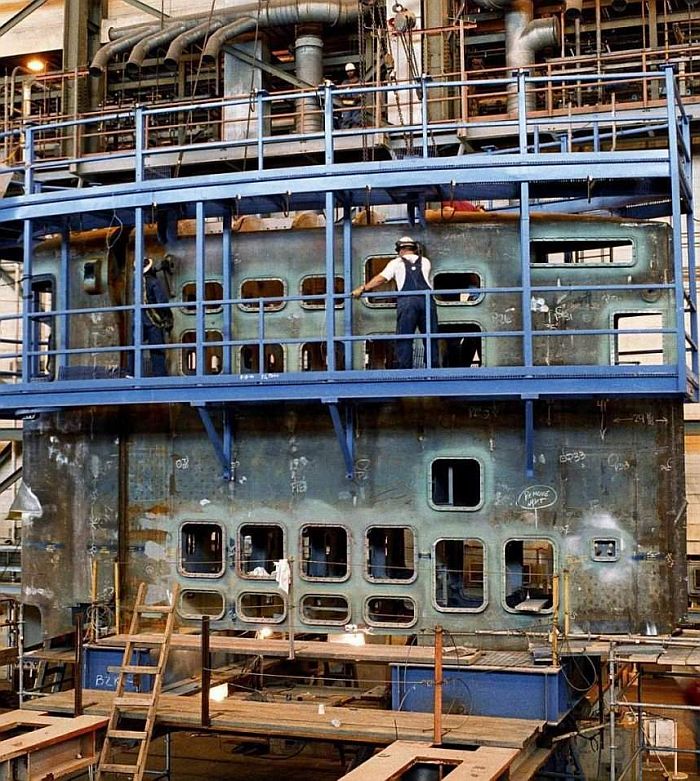 (上與下) 維吉尼亞號仍在通用電器船舶廠房建造時的畫面。