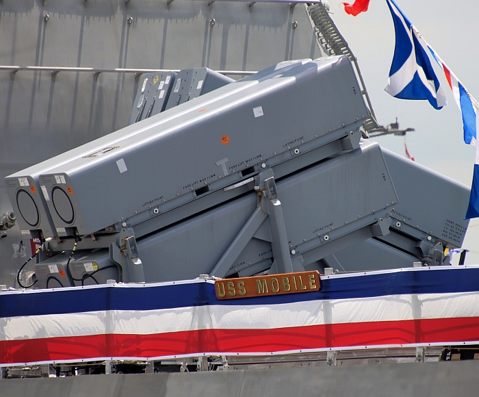 被用來安裝MK-53 Nulka主動式誘餌發射器,而原本裝置MK-46 30mm火砲模組的位置則加裝垂直發射器。