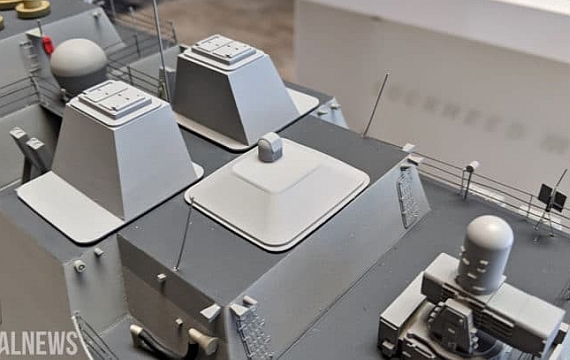 兩組四聯裝NSM反艦飛彈發射器,艦橋頂部左側與船樓中部右側各裝一座Mk-48 Mod II 30mm火砲控制系統,