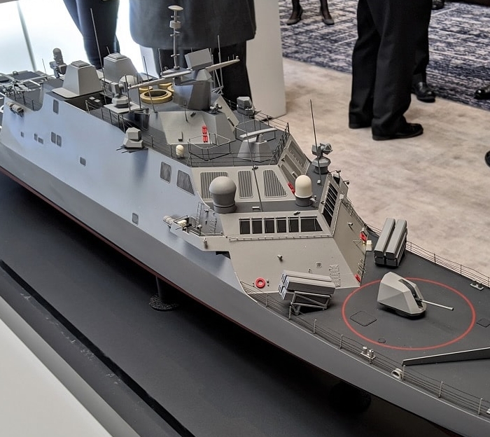 洛馬集團在2020年水面船艦協會年度論壇(SNA 2020)展出的自由級強化裝備模型。船樓前方B砲位加裝