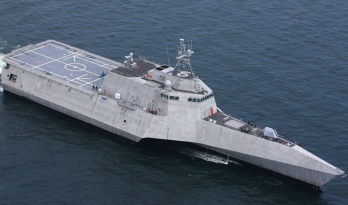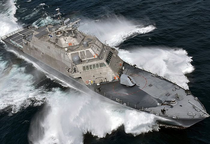2016年以後 在2015年12月以來,短短九個月裡,共有四艘LCS先後發生推進系統故障(見下文),並且涵蓋了此時進入服役的全部三艘自由級(LCS-1、3、5),美國海軍對此高度關注。整體而言,LCS服役以來不斷遇到鋁合金結構焊接點破裂、鋁合金腐蝕、機械故障的問題。由於服役後發生的許多問題,美國海軍有人私下戲稱LCS為「小破船」( Little Crappy Ship)。 在2016年夏季,美國海軍完成一項對LCS服役情況的調查,包括設計、人力配置、訓練程序、人員表現、人員編制大小、輪調方式、專業程度等等。而在沃茲 堡號與自由號的損壞之後,美國海軍打算立刻做出一些轉變措施,希望減少未來LCS操作時的人為失誤。美國海軍仔細研究LCS初期部署時的所有教訓,改進 LCS的後勤維修、操作訓練、部署等程序。 在2017年7月,消息傳出美國海軍正準備在中東地區部署LCS,打算在2018年的時候能在巴林長期部署一艘、在新加坡兩艘。由於LCS體積較小、吃水較淺,在中東一些近岸淺水域操作時將比柏克級等大型主戰艦艇更為便利。 隨著美國海軍吸收LCS早期部署的挫折,改革訓練、戰備、裝備維修保障的措施,加上任務模組逐漸發展成熟,LCS船艦的部署運作狀況漸入佳境。從2016年10月起,獨立級的科羅納多號(USS Coronado LCS-4)部署至新家坡,隨後成功進行了長達18個月的印度-太平洋地區(Indo-Asia-Pacific)部署,期間表現良好。這是獨立級第一次實戰部署到新家坡,其他締造的紀錄包括首次部署MQ-8B無人飛行載具與Telephonics公司AN/ZPY-4(V)1多模式海面監視雷達雷達的組合,以及首次LCS帶著超視距反艦飛彈(即先前加裝的魚叉反艦飛彈)投入作戰部署。這次新家坡部署的後面8個月,科羅納多號的表現遠超過預期,證實其出色的續航力與裝備可靠性;過去要花2個星期維修的故障,科羅納多號只花4天便告完成。科羅納多號的艦長表示,船艦部署在前沿區域是個不小的考驗,一般美國海軍艦艇要花費很大的努力才能完成6至8個月的前沿部署,但科羅納多號卻在18個月內都處於戰備狀態。由於科羅納多號這次部署的優異表現,過去經常批評LCS的LCSRON 1中隊指揮官喬迪.哈裡斯上校(Jordy Harrison)轉變了立場,成為LCS的堅定支持者,並肯定美國水面作戰指揮官湯姆斯.羅頓少將(Vice Adm. Thomas Rowden)從2016年開展的LCS改革。 原本美國海軍打算經過2016年調整LCS部署運用與人力編制(見下文),在2018年起同時在新加坡與巴林部署LCS(新加坡兩艘、中東一艘);然而實際上基於LCS艦隊的維修與值勤狀況,在2018年4月時,巴林的部署確定推遲到2019年,甚至2018年結束前可能沒有任何一艘LCS可以部署到新加坡。在2018年上旬,四艘最早服役的LCS Fligth 0(LCS-1~4)之中有三艘在維修,後續四艘(LCS-5~8)也都還在成軍巡航後由船廠進行各項修正的階段(Post Shakedown Availabilities,PSA),因此沒有任何LCS可以立刻進行海外部署。最後,在2018年內,美國海軍沒有任何一艘LCS進行海外部署。 在2018年8月23日,洛馬集團與馬丁.馬里塔船廠(Fincantieri Marinette Marine)交付第六、第七艘自由級蘇城號(USS Sioux City LCS-11)以及維奇托號(USS Wichita LCS-13)給美國海軍;其中,蘇城號在11月17日於馬里蘭州安納波里斯(Annapolis, Maryland)的美國海軍學院(United States Naval Academy)入役,這是首艘在美國海軍學院舉行成軍典禮的作戰船艦;維奇托號則在2018年冬季服役。 在2019年初,美國海軍表示,在本財年(到9月)結束前,會至少部署三艘LCS。美國海軍水面艦隊指揮官(Commander of Naval Surface Forces)里查.布朗中將((Vice Adm. Richard Brown)告訴新聞媒體,美國海軍正在為今年(2019)部署LCS而作業,兩艘部署在美國西岸,一艘在東岸,到2020年初會再有一艘部署在東岸。里查.布朗中將指的兩艘部署在西岸的是獨立級的蒙哥馬利號(USS Montgomery LCS-8)與嘉貝麗.吉佛斯號(USS Gabrielle Giffords LCS-10),從聖地牙哥前往西太平洋部署;而部署在東岸的則是自由級的底特律號(USS Detroit LCS-7,2019年部署)與小岩城號(USS Little Rock LCS-9,2020年初部署),都從佛羅里達出發。而在2019年2月,美國南方司令部(U.S. Southern Command,SOUTHCOM )宣布底特律號投入支援美國南部海域的反毒緝私任務。 機械事故 密爾瓦基號機械事故(2015年12月) 在2015年12月11日,自由級的密爾瓦基號(USS Milwaukee LCS-5) 在從加拿大哈里法克斯航行到佛羅里達五月港(Mayport)途中,推進系統發生故障 而完全停航 ,該艦隨後被拖往維吉尼亞的港口進行檢修;檢查時,艦上的潤滑油過濾器被發現聚集大量金屬碎屑造成堵塞,顯示機械出現嚴重磨損。對於2015年11月才服 役的新艦就發生故障,參議院軍事委員會主席約翰·麥凱恩在接受「海軍時報」採訪時時表示,密爾瓦基號的故障讓人深感不安,特別是因為該艦上個月(2015 年11月21日)才服役。 在2016年1月14日,美國海軍項目執行官表示,密爾瓦基號的故障初步判斷是減速齒輪故障,需要對減速齒輪與並車齒輪進行檢查 與處理。在2016年2月上旬,美國海軍表示,已經大致確認了密爾瓦基號故障的原因;事故當時,爾瓦基號正以燃氣渦輪、柴油機併聯 運轉輸出,在38節的高速航速行駛;隨後由於一個在燃氣渦輪前部的燃油閥發生問題,使得油料無法正常供應,遂觸發控制系統的安全機制,自動關閉兩具燃氣渦 輪主機。在這個過程中,推進控制系統應該先讓離合器逐步降檔並脫離 燃氣渦輪,只剩柴油機繼續驅動;然而,離合器與燃氣渦輪之間卻仍保持連結,進而 在傳動系統上製造出高扭