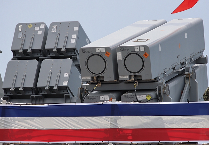 垂直發射器後方裝有一套雷射武器系統,緊鄰於SeaRAM海公羊短程防空飛彈發射器。