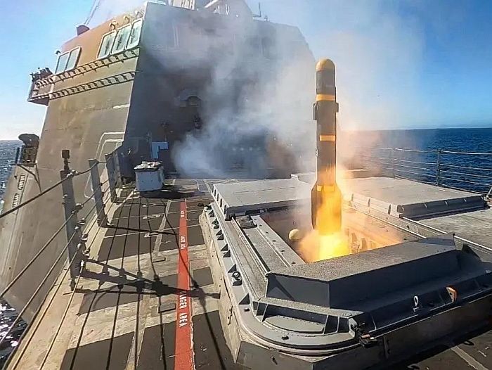 地獄火飛彈實彈試射,這是首次驗證以水面飛彈模組(SSMM)攻擊岸上目標。