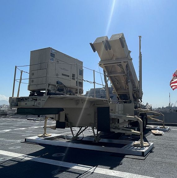 一個MK 70 Mod 1 PDS發射模組與AN/TPQ-53雷達從聖地牙哥啟航。